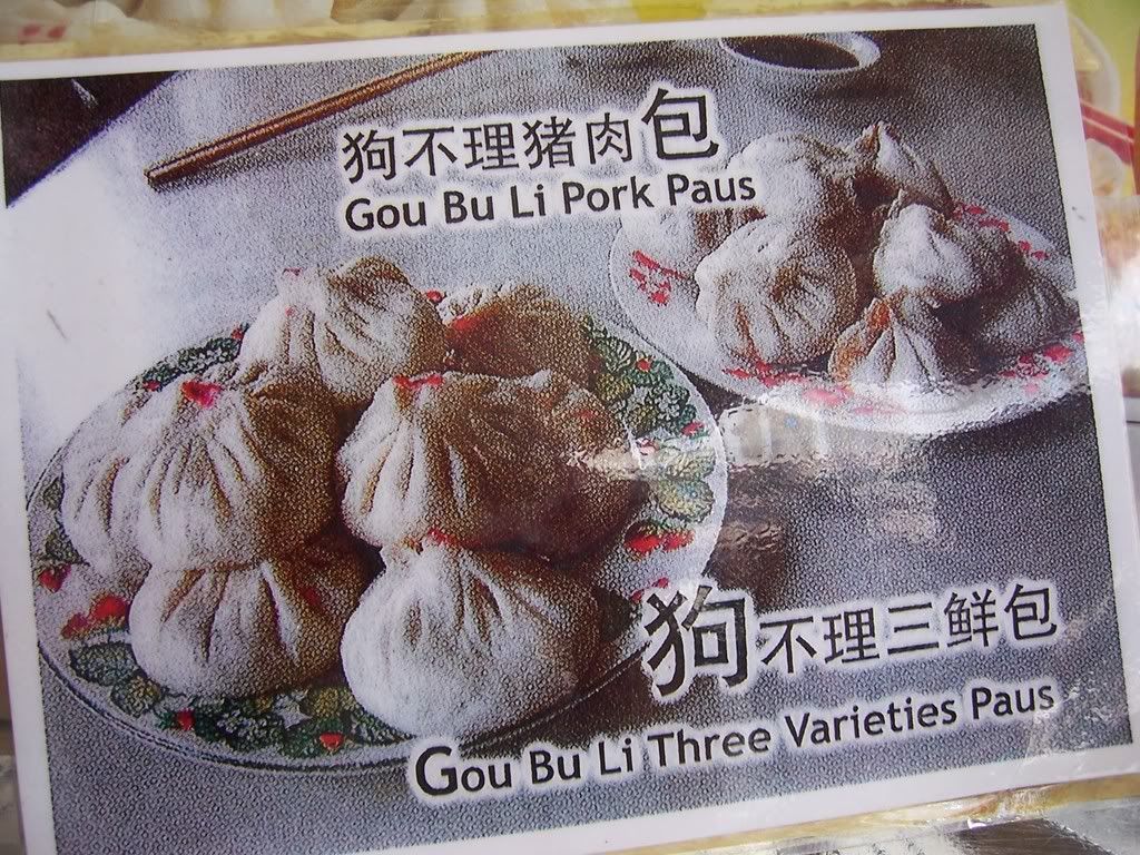 The name Gou Bu Li Pork Paus when translated directly from the Chinese words means "Dog Don't Care Pork Paus". What a name!